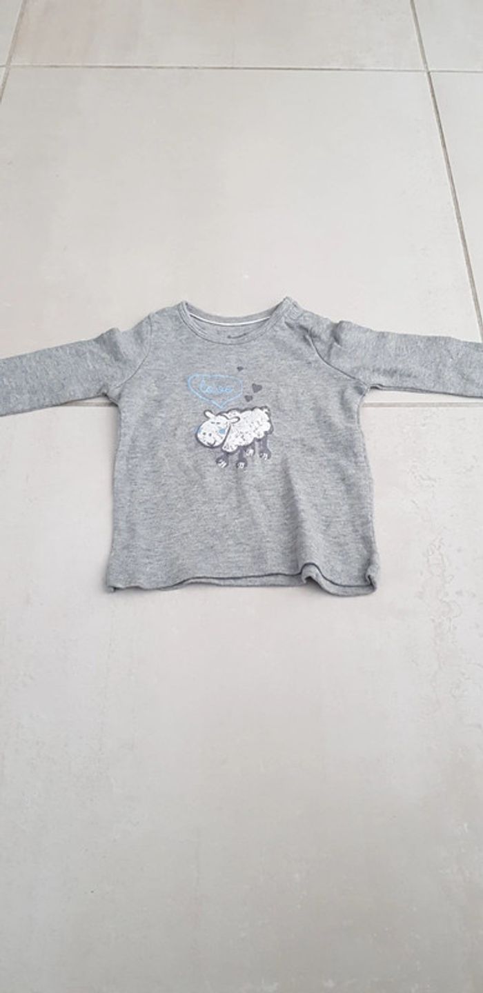 Tee-shirt manche longue gris 2.6 mois 62.68cm neuf sans étiquette marque lupilou mixte #bébé #pull #teeshirt