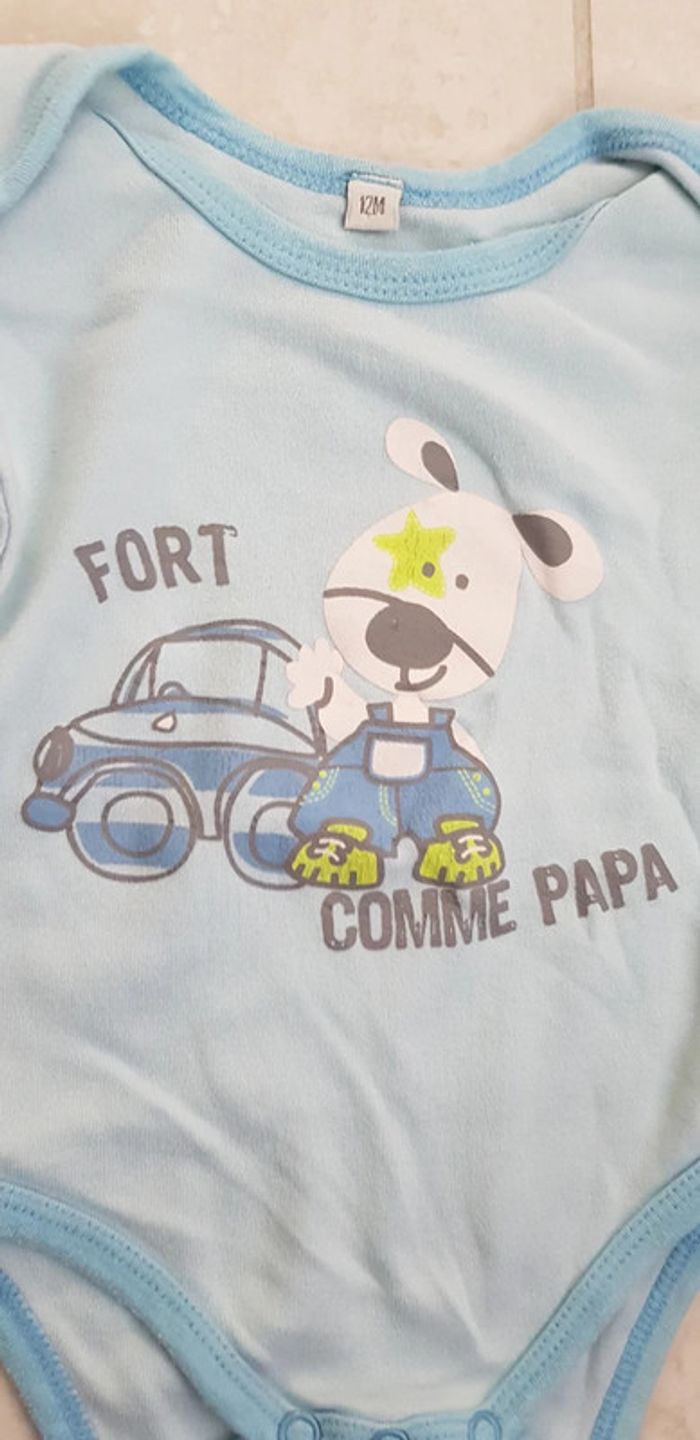 Body "fort comme papa" très bon état taille 12mois #bodybébé #bebegarcon