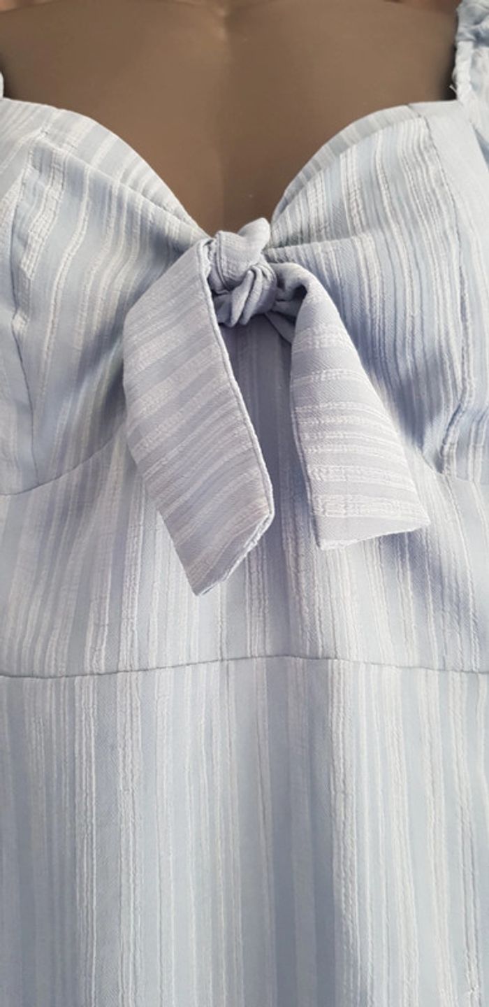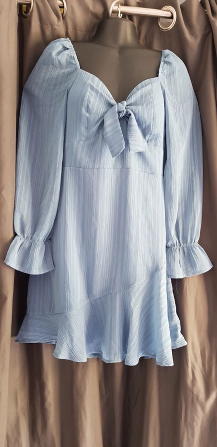 Tunique bleu gris manche 3/4 volant petit nœud décolleté porté mais bon état taille L #karlyne78femme