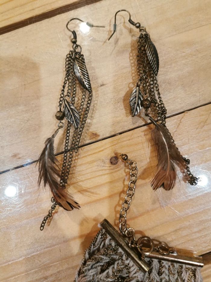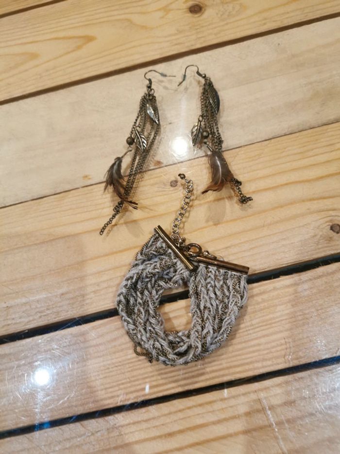 Bracelet et bo #bouclesdoreilles #plumes #braceletdoré #tresse #bonobobijoux