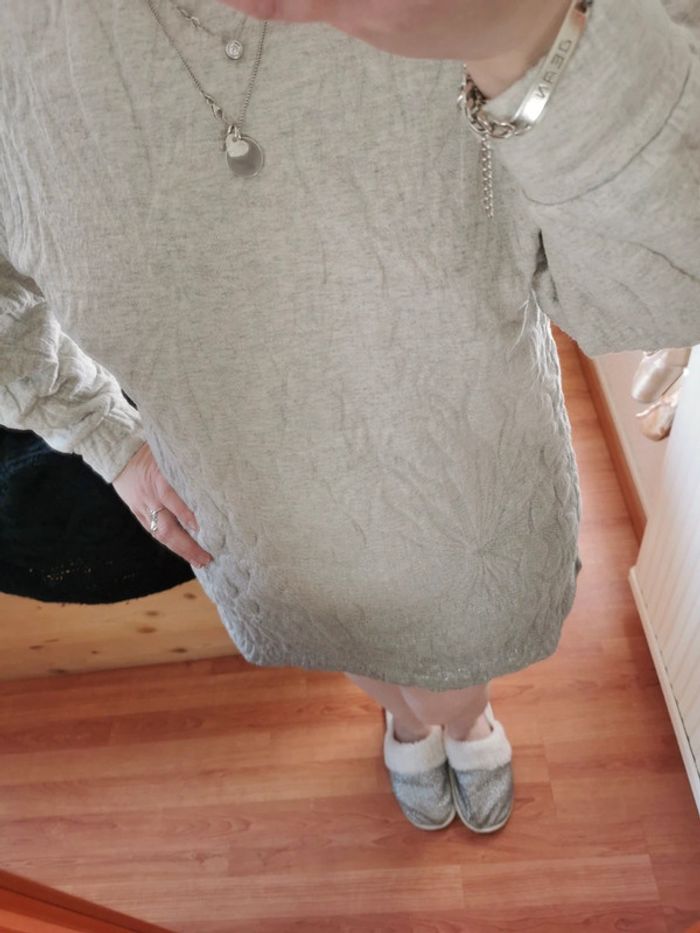 Fleuris en reliefs avec effet argenté sur le bas #robesweat #zara #robe #sweat #zara #robeargenté #robefemme #robesweat #zara #zarawoman