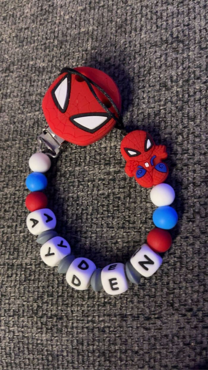 Attache tétine personnalisé en silicone ou en bois au souhait de l’acheteur . Personnalisable au choix de l’acheteur que ce soit la couleur comme le prénom ou le thème . Le fil est doublé pour plus de sécurité tout le long de l’attache tétine. N’hésitez pas à me demander et regarder mon dressing. Une photo vous sera envoyée avant l’expédition pour vous ayez un aperçu du rendu. Tous les produits sont réalisés avec du materiel spécial conçu aux bébés , enfants.