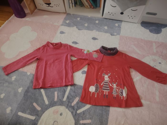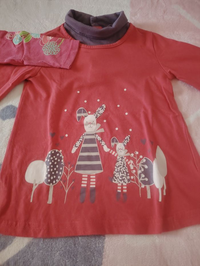 😻 Lot de 2 sous pulls 😻 Thèmes "Lapins" et "Fleurs" 😻 Marque Orchestra pour le rose 😻 Taille 23 mois 😻 Très bon état