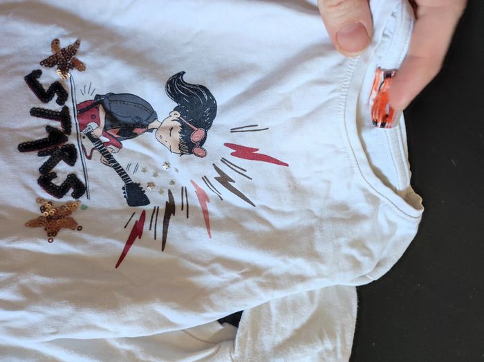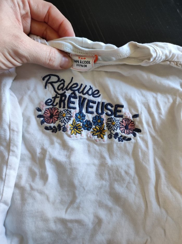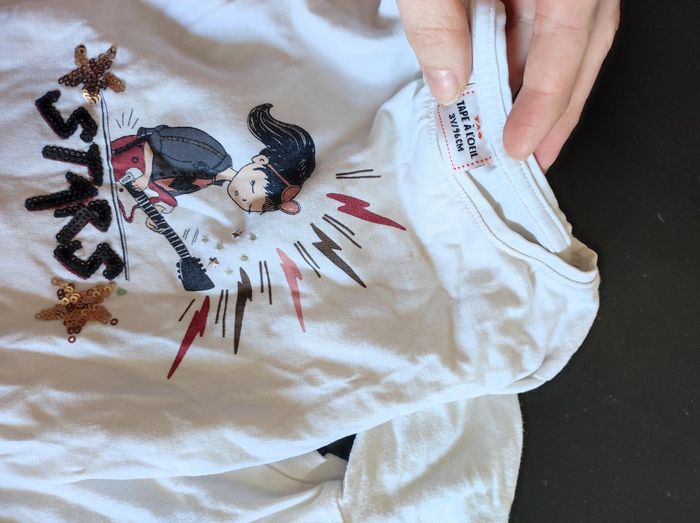Lot de 3 tee shirt manches longues blanc 3 ans (petite tâche sur le tee shirt avec la guitare) et legging noir 3 ans