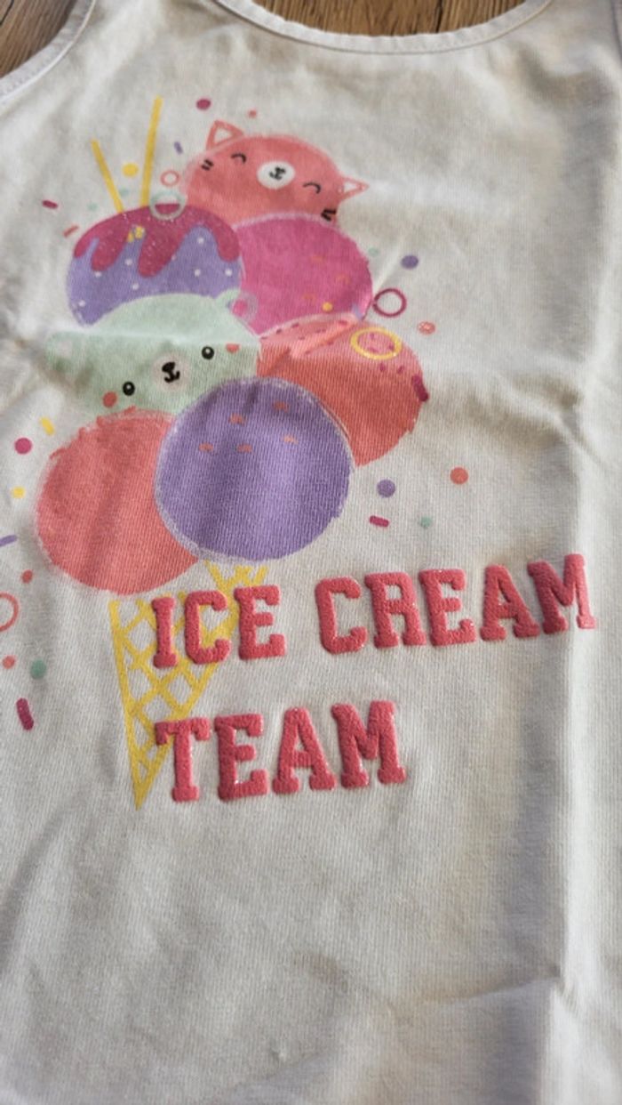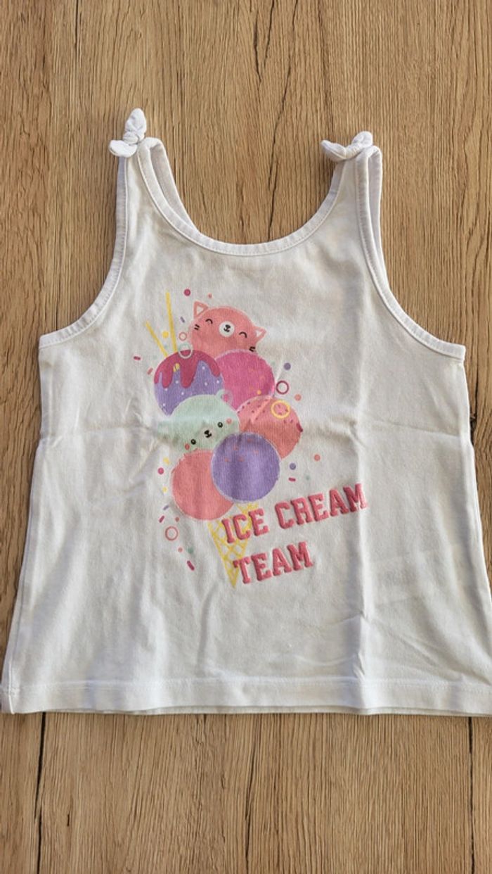 #18mois_F_ltitia8375 Taille 18 mois. Neuf jamais porté (mais lavé). Débardeur blanc, avec motifs glaces. #lot