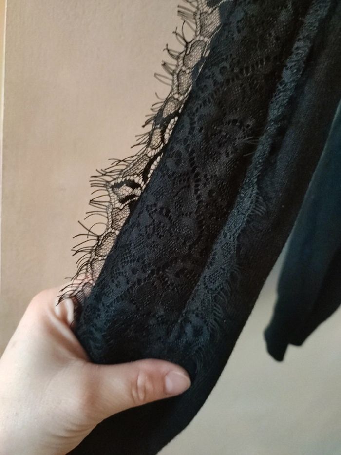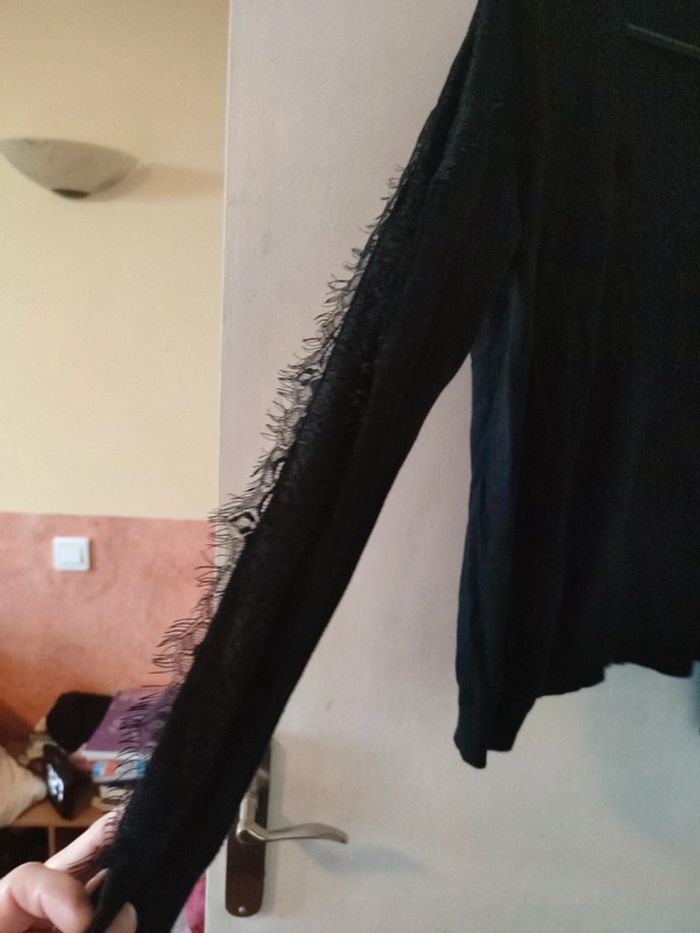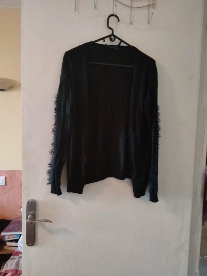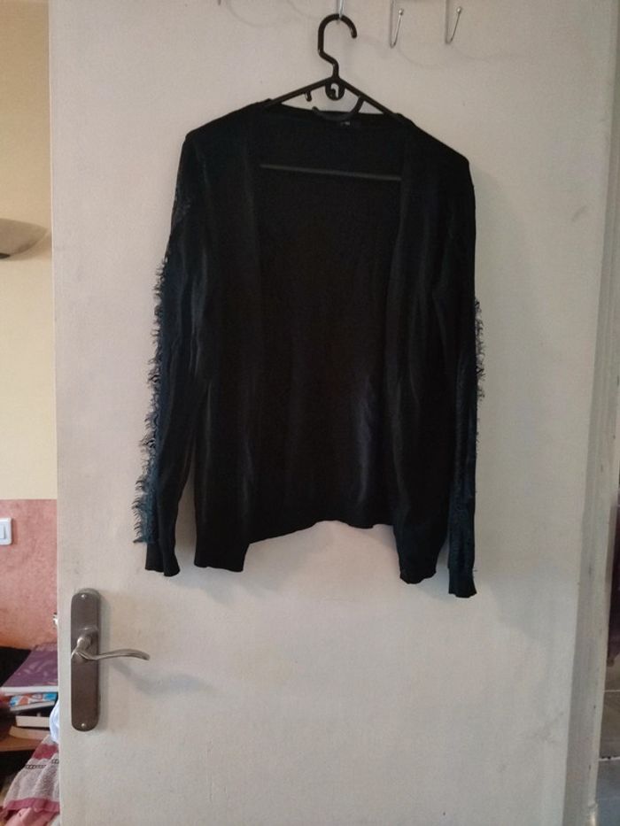 Gilet noir de la marque Kiabi taille l, dentelle sur les côtés des manches et fermeture par bouton sur le devant Très peu porté #fanny26210femmetaille40