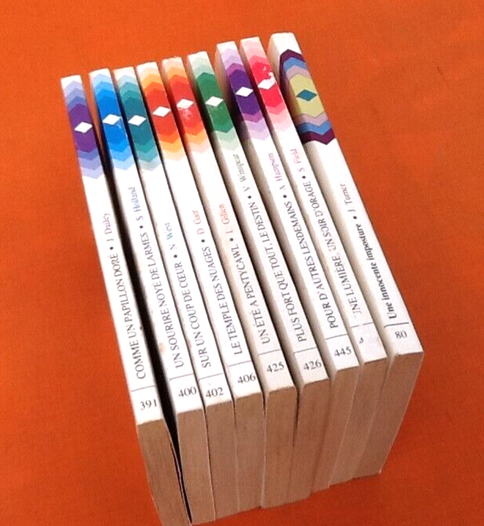 (article vendu en l' état, état d' usage voir toutes les photos) Lot de 8 Harlequin + 1 bonus Harlequin Série Royale " Collection Harlequin " Années 1983-1984 N°391 N°400 N°402 N°406 N°425 N°426 N°445 N°446 + 1 bonus Harlequin Série Royale N°80 Poids total : 800grs