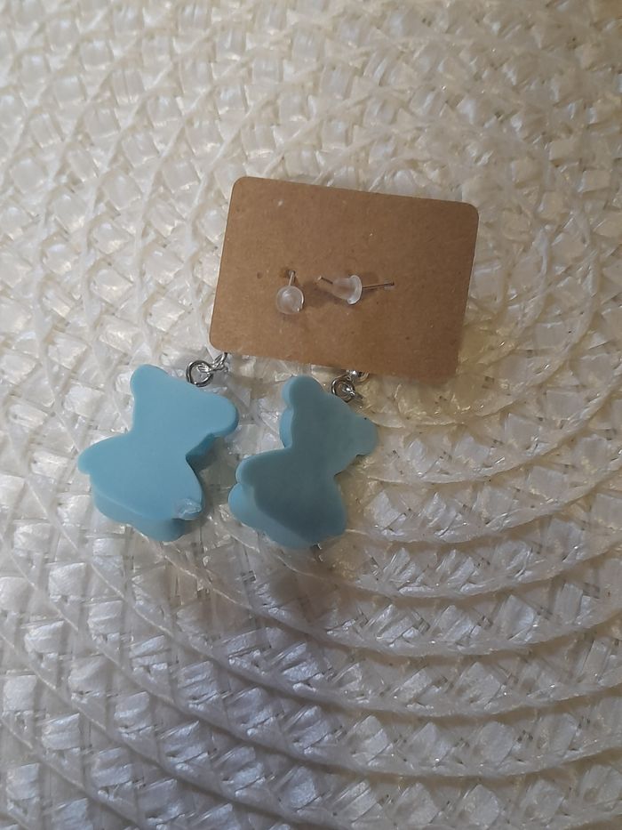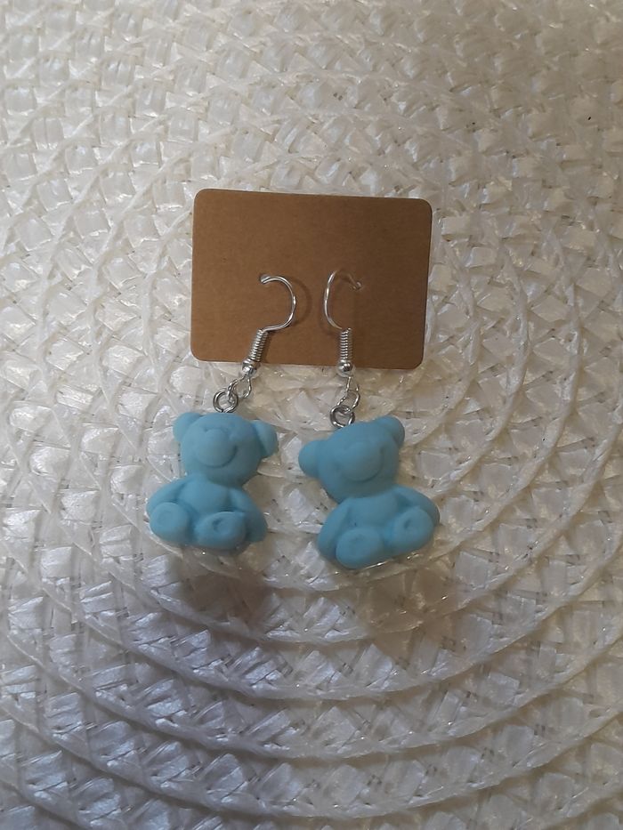 Paire de boucle d oreille artisanal ourson bleu - photo numéro 1