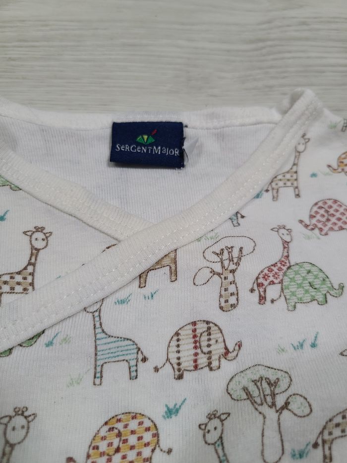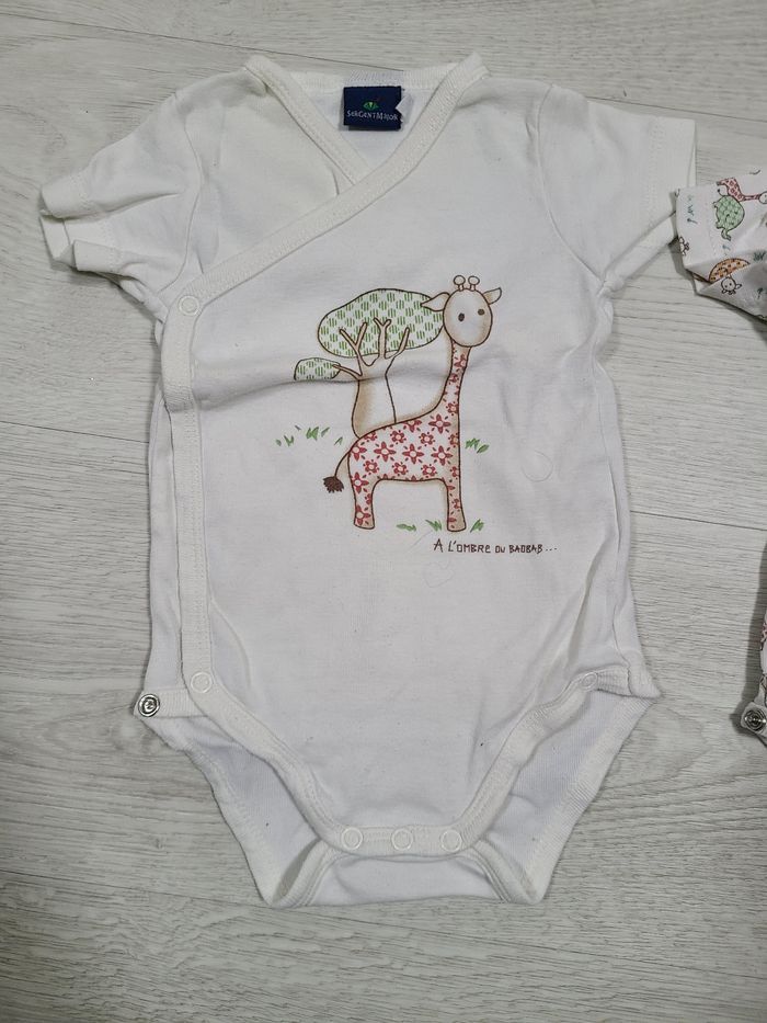 2 body 6 mois Blanc motif girafe savane col jauni sur les deux