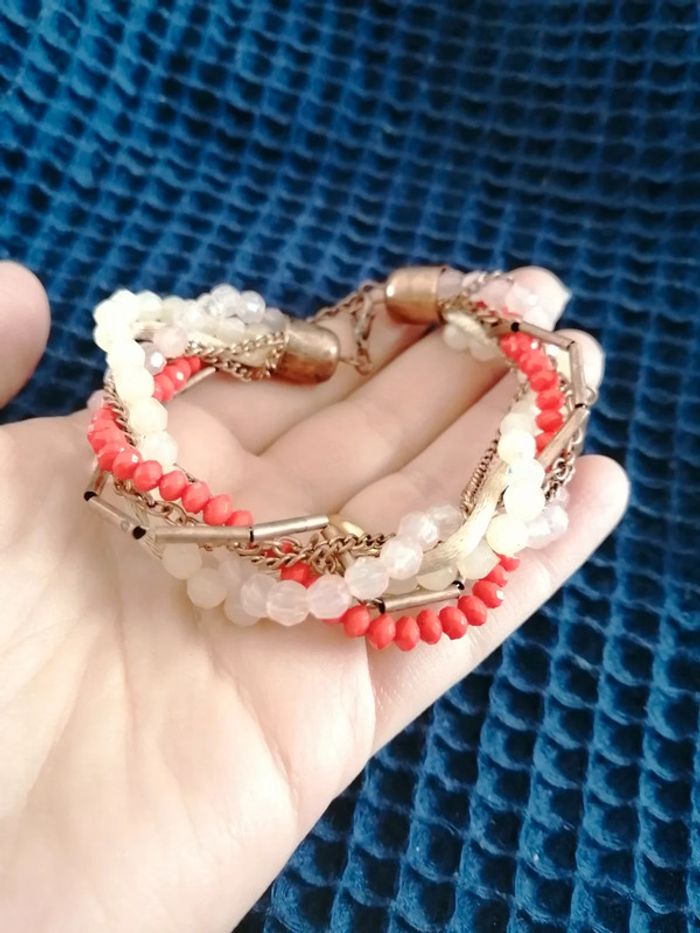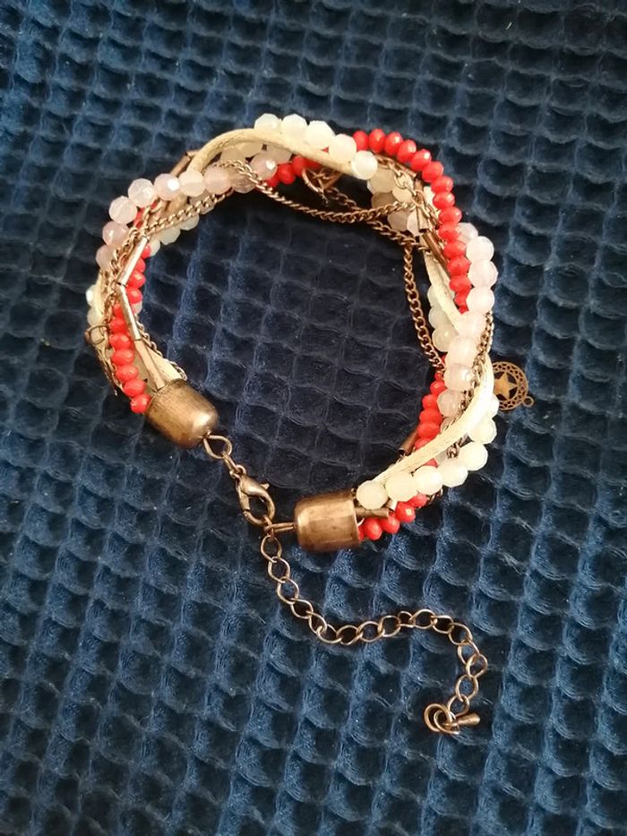 Bracelet large, réglable, perles. Couleurs : rouge, cuivre, ivoire. Retrouvez facilement mes autres bijoux : #milie8_bijouxaccessoires Envoi via mondial relay svp