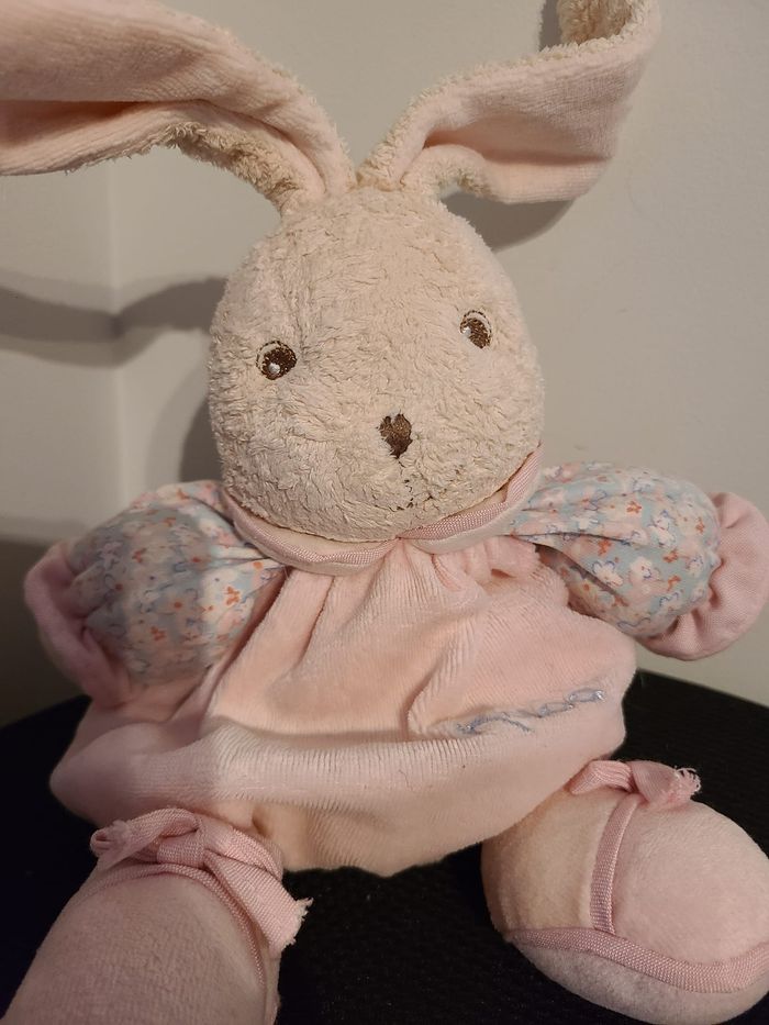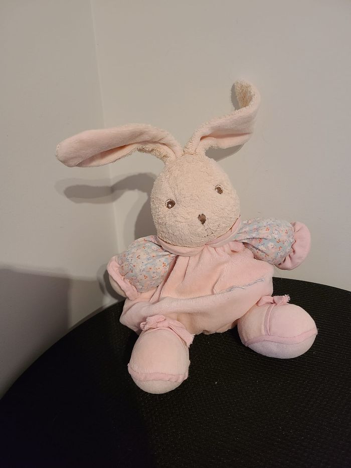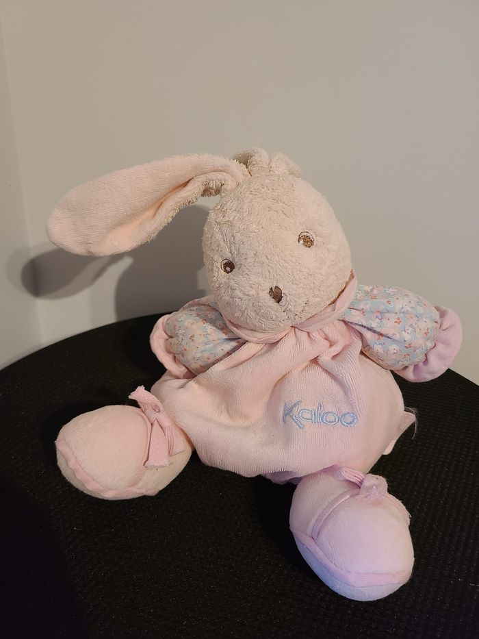 Doudou Lapin Boule Rose Bleu Fleur Lilirose Grelot KALOO 16 cm 122