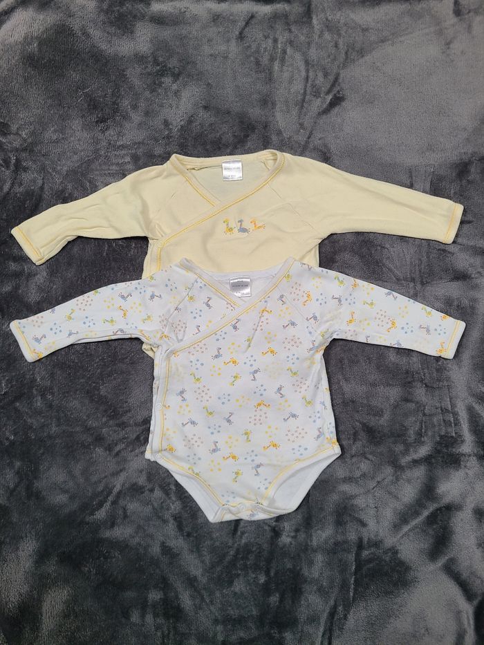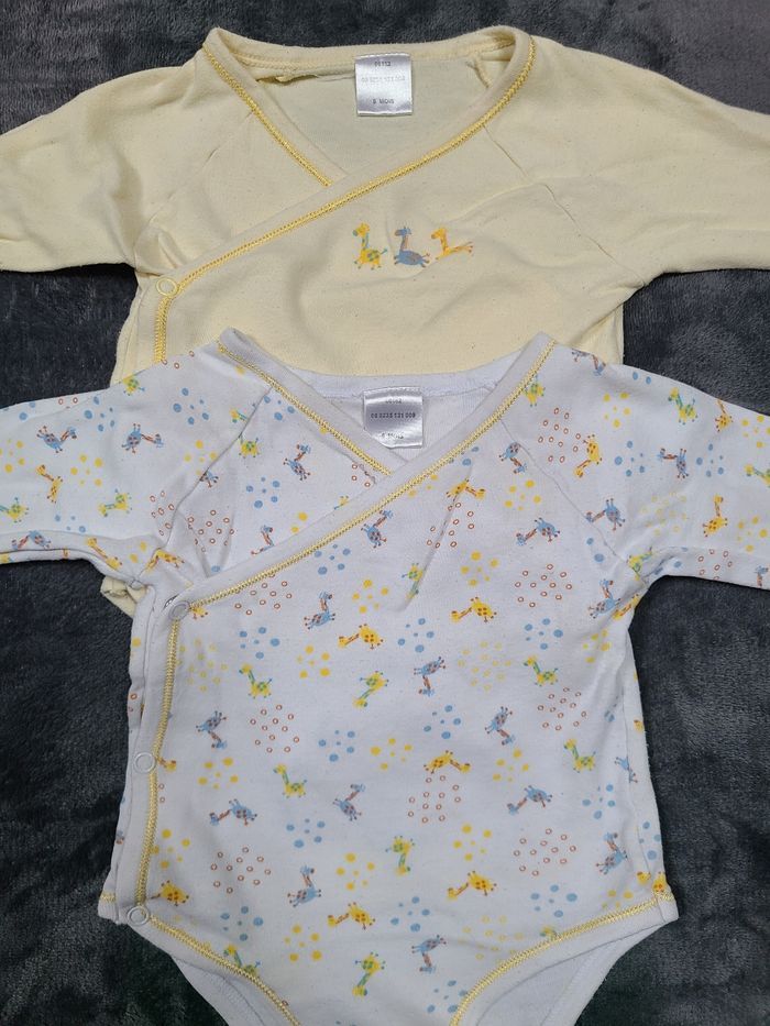 2 Body manche longue 6 mois Body croisé devant caché cœur Blanc motif girafe