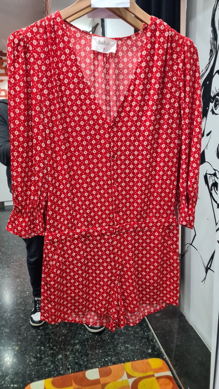Combishort rouge à motifs de chez Ba&sh en parfait état. Taille 0, correspond à un 34/36.