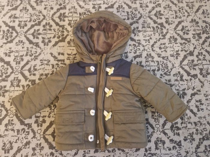 Doudoune kaki pour bébé, neuve sans étiquette 9 mois (69-72cm ; 9kg) 2 poches à scratch Doublure chaude et douce