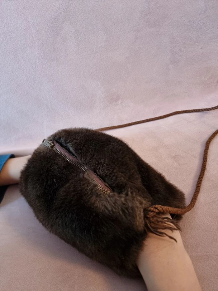 Manchon pour tenir ses mains au chaud Sac à main Fermeture zippée Peut aussi se mettre en sac bandoulière Couleur : fourrure marron Taille 23cm x 14 cm Pour effet chic En très bon état. Voir photos #angel_sacs