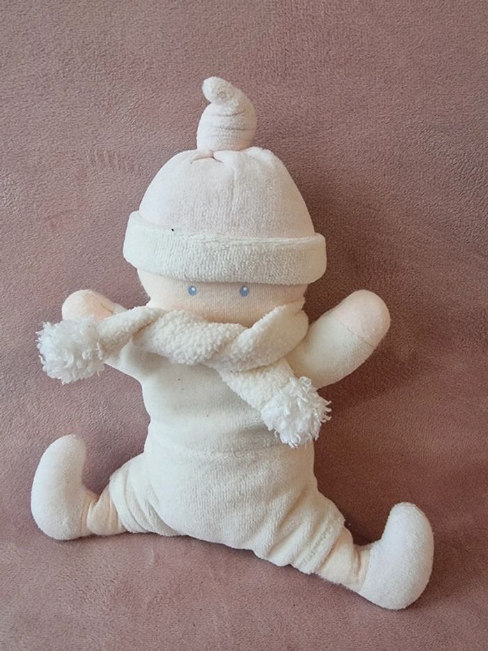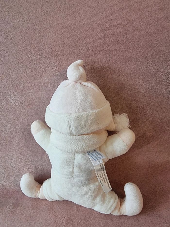 Doudou corolle Vintage, 2002 Lutin rose pâle et crème Bonnet rose cousu Avec son écharpe Hochet Taille 21 cm assis Pour moments de douceur et de tendresse En très bon état. Voir photos