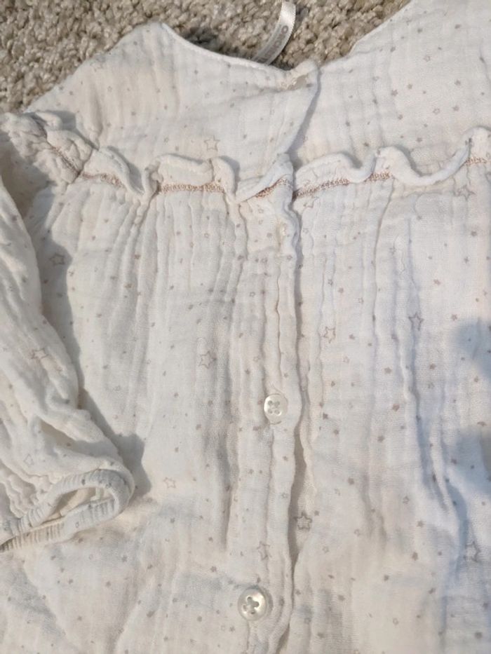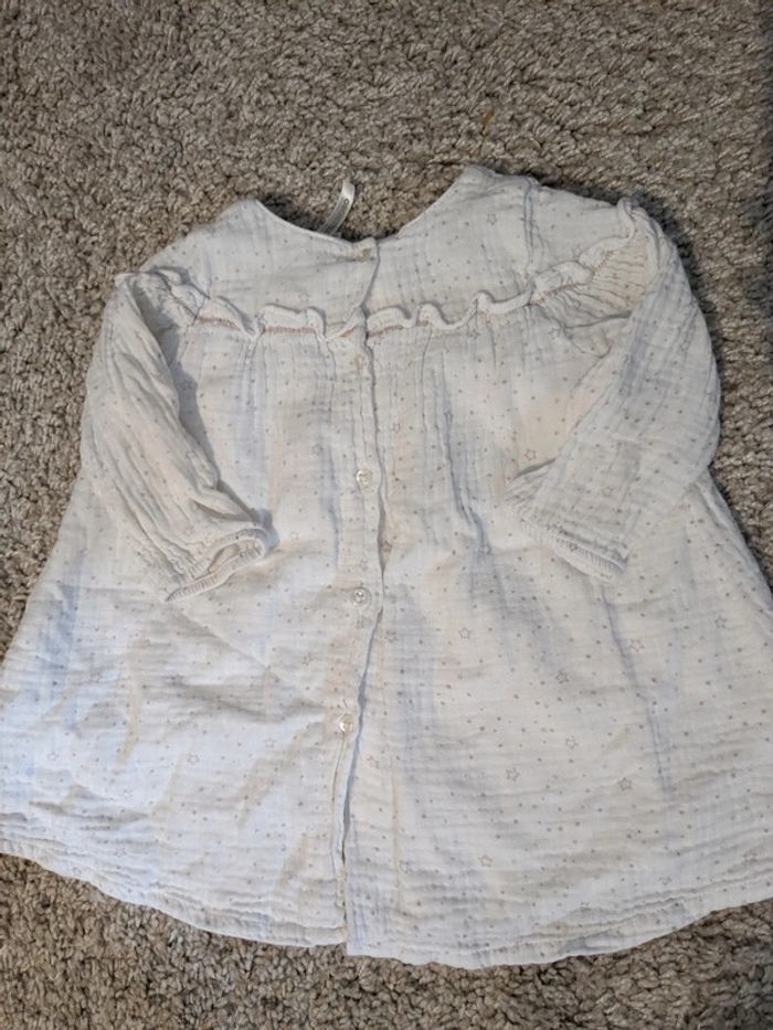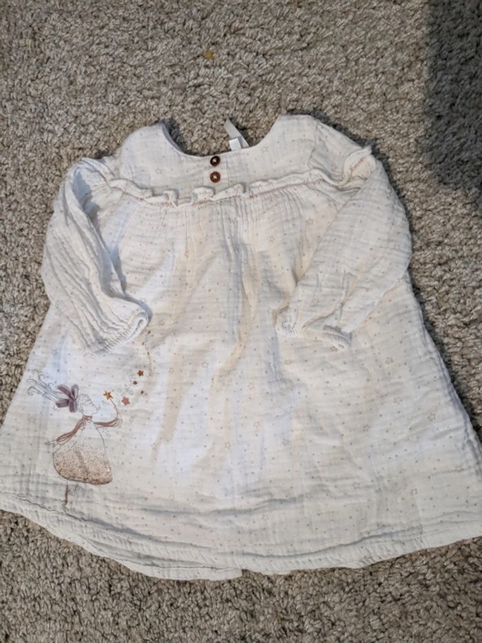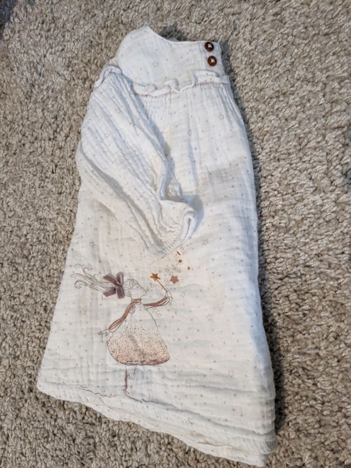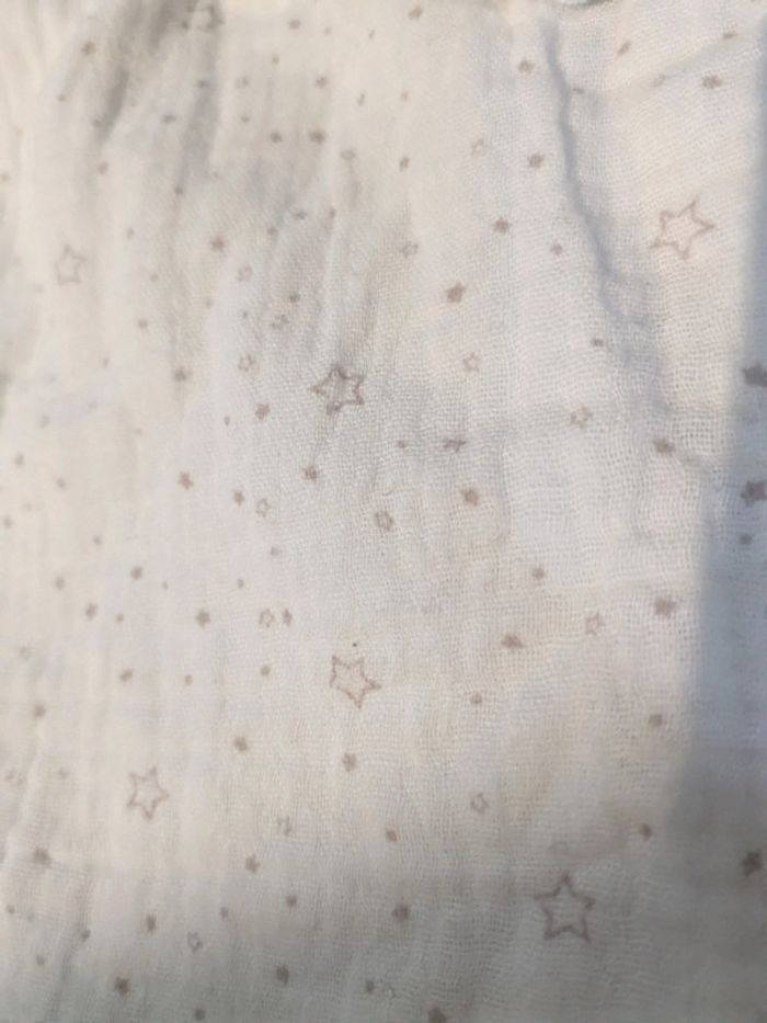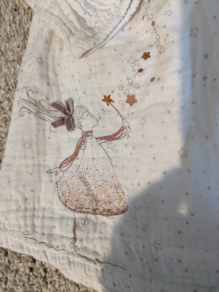 En gaze de coton - blanche avec motifs vieux rose - 9 mois - doublée mais légère