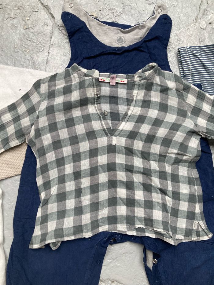 Chemisier Bon point très bon état Pull Jacadi très bon état Salopette Boutchou très bon état Salopette gap très bon état TEE shirt manchs longues petit bateaux très bon état Chemise sans marque état moyen Pyjama boutchou état moyen