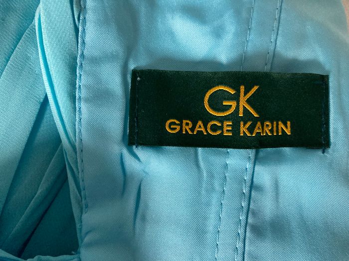 Marque "Grace Karin", robe de cérémonie, de soirée ou de fêtes. comme neuve, portée 1 seule fois pour un mariage, mousseline doublée satin, encolure cache-coeur, fermeture par laçage dos. Portée 1 seule fois pour un mariage, longueur 105 cm.