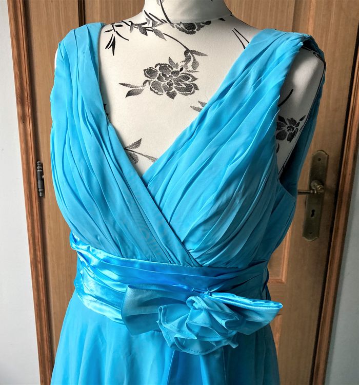 Robe mousseline turquoise de cérémonie taille 38/40 - photo numéro 2