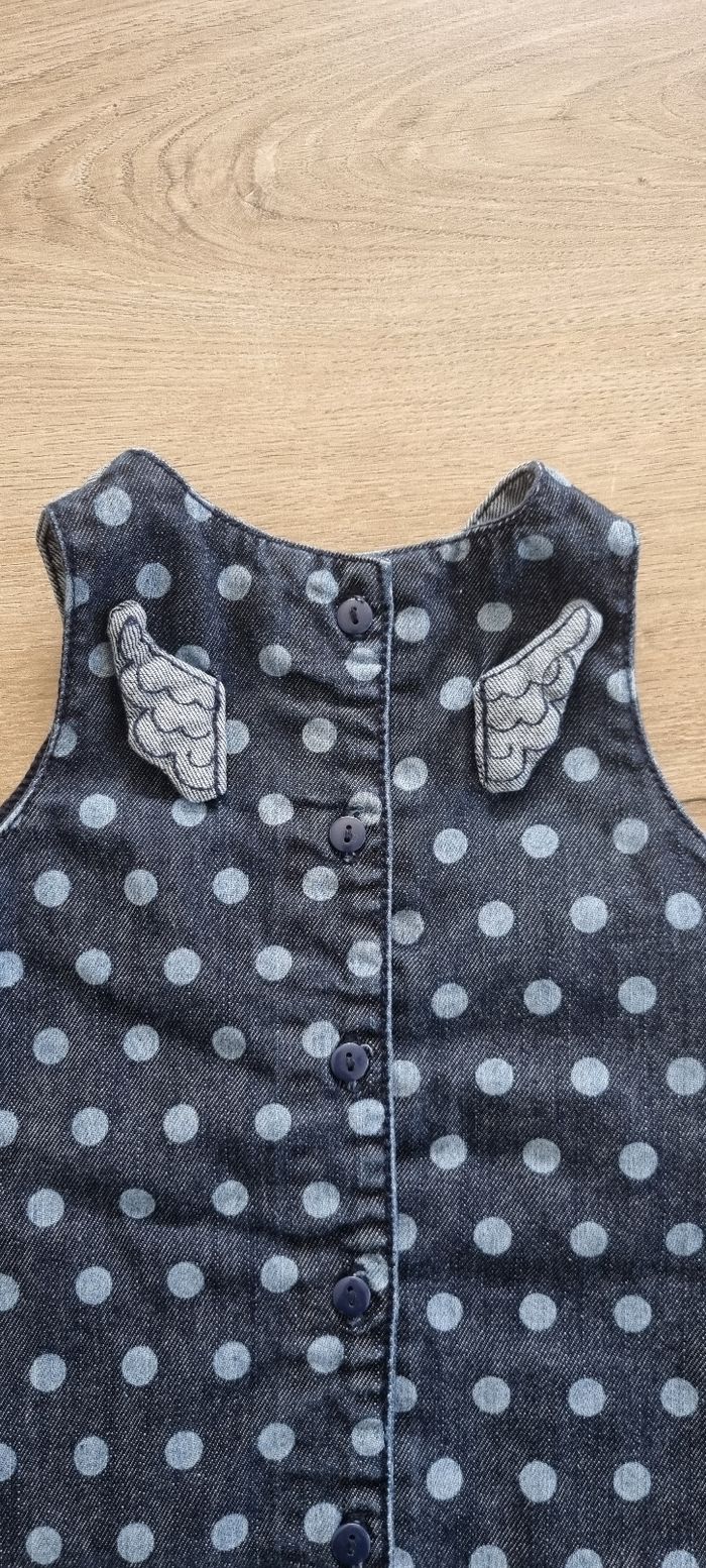 Jolie robe en jeans avec motif chouette, petites ailes dans le dos Fermeture par boutons le long du dos Du Pareil Au Même taille 6 mois Parfait état