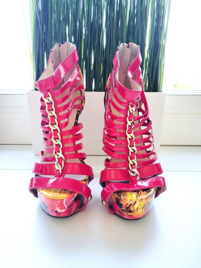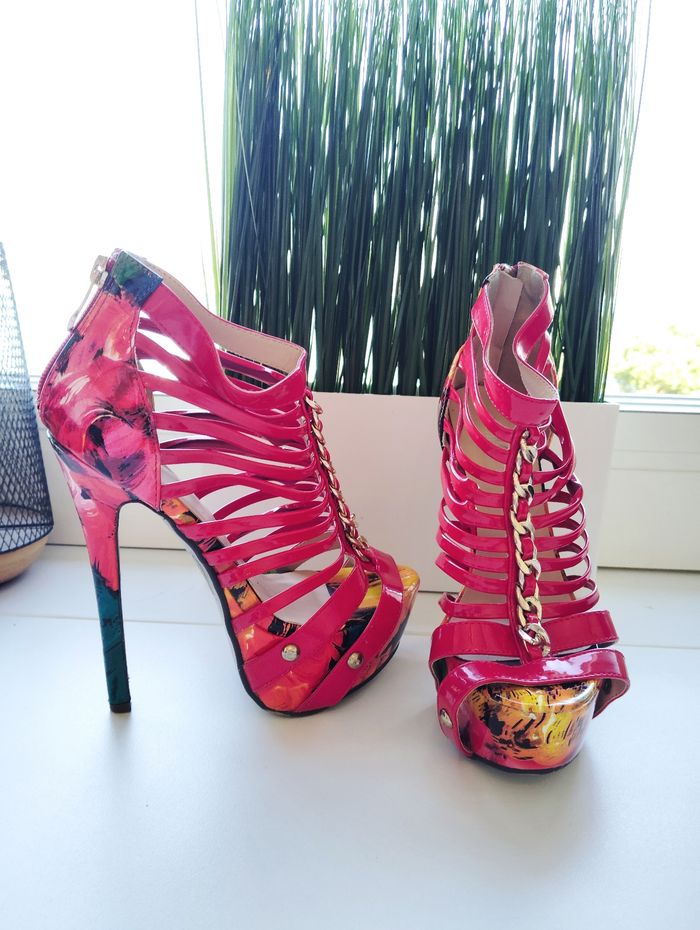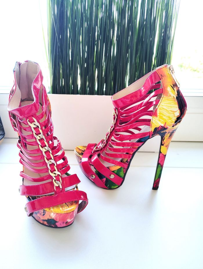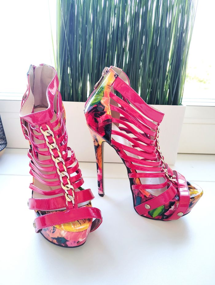 ✨ Envoi très rapide sous 24-48 💌💌💌 ⭐ ABONNEZ- VOUS ⭐ 😍 Magnifique Chaussures à talons Fama Sandales, Taille 35 ✨ Couleur: Imprimés Rouge ♥️ ⭐ Parfaite , Etat Irreprochable ✨Taille du talon: Plus de 10 cm