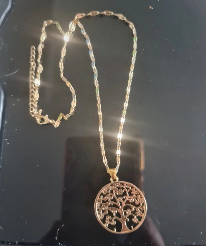 Collier en acier inoxydable chaine reglable grain de café médaille arbre de vie
