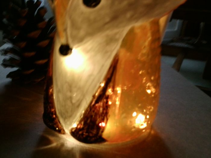 Jolie veilleuse originale en verre peint (donc recyclable) en forme de Petit Renard. Nomade, elle accompagnera les enfants dans leurs rêves et leurs activités (elle ne pèse que 360g).Elle les fera, je l'espère, aimer très tôt les Animaux. Elle peut plaire également aux amoureux des animaux de tout âge par son doux éclairage Elle fonctionne avec une guirlande Led alimentée par 2 piles CR2032 (fournies)