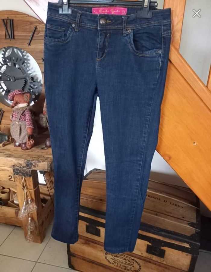 ______________💥DESTOCKAGE 💥________________ -20% 🏷3,20€ FEMME 36 / S N°41 Jeans bleu fonce Longueur entre jambes 69 cm Plis couture cheville Taille 36 / s Cache cache 4e #kelly_femmeT36 #kelly_soldes