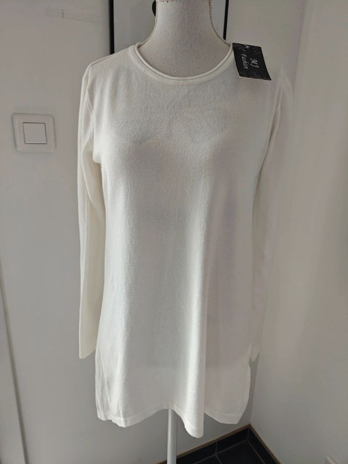 Jolie pull blanc tout doux asymétrique neuf Plus long à l'arrière , taille xl/xxl convient 42/44 Envoi rapide et soigné Remise sur Lot