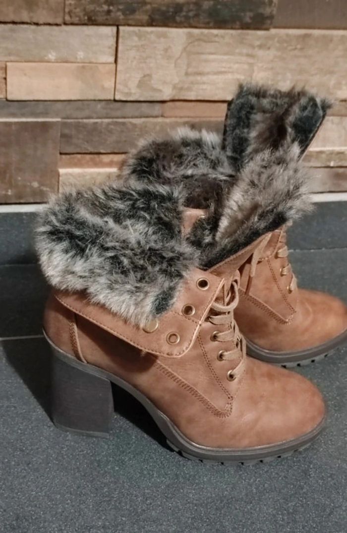 Bottines fourrées confortables p39 état proche du neuf , talons 9 cm , pour un style élégant et décontracté , se porte hautes ou basses . Envoi rapide et soigné Remise sur Lot