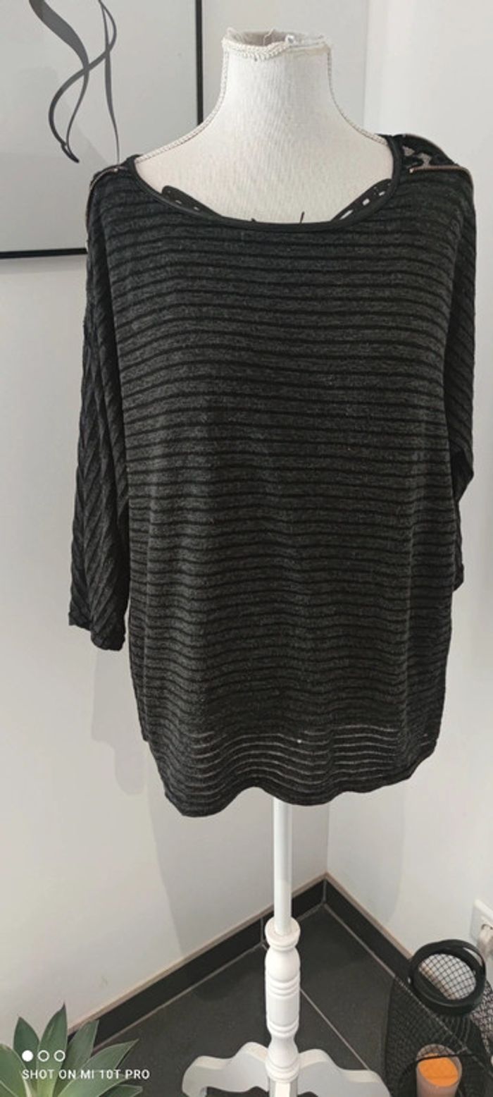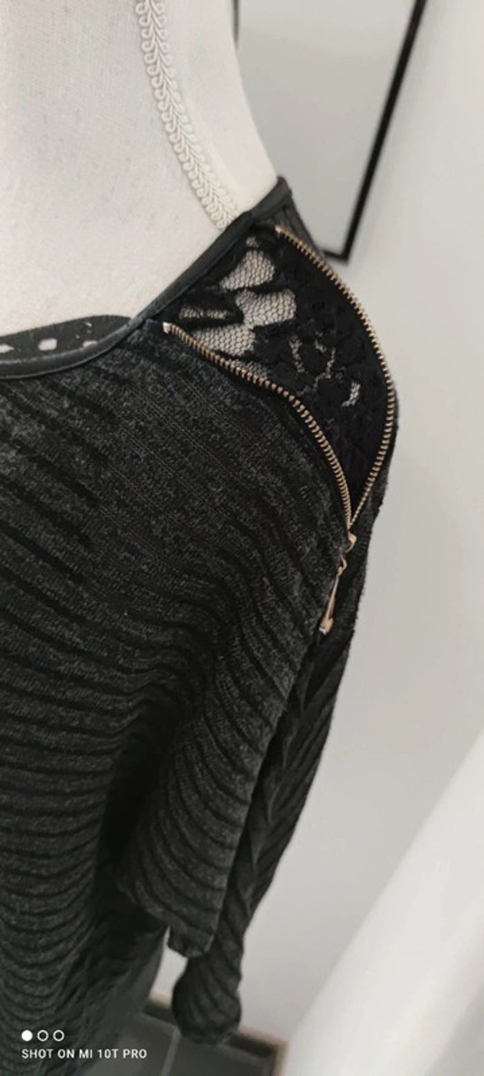 Top manches 3/4 , avec fermeture et dentelles aux épaules , En bon état juste un micro accro voir photo 3 . Taille 42/44 Remise sur Lot envoi rapide et soigné