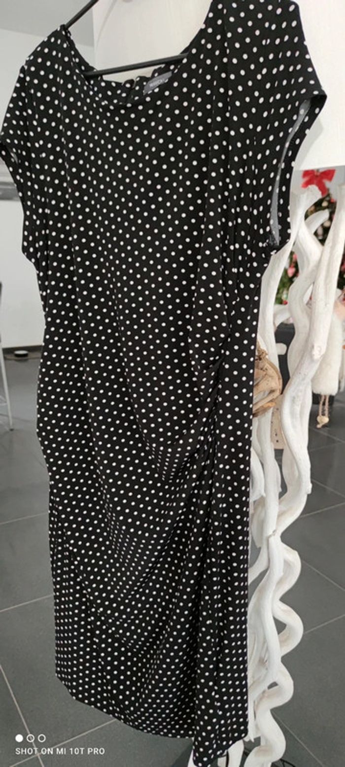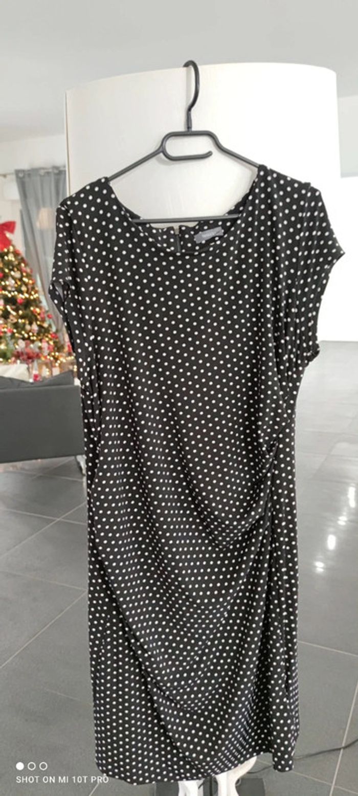 Jolie robe indémodable noir à pois blanc ,taille xl 44/46 matière stretch coupe qui affine la silhouette . État proche du neuf Remise sur Lot Envoi rapide et soigné
