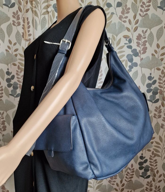 Grand sac femme besace neuf ESPRIT modèle Vivian Couleur bleu marine, sangle réglable 44 x 39 x 19 cm Valeur 90 euro