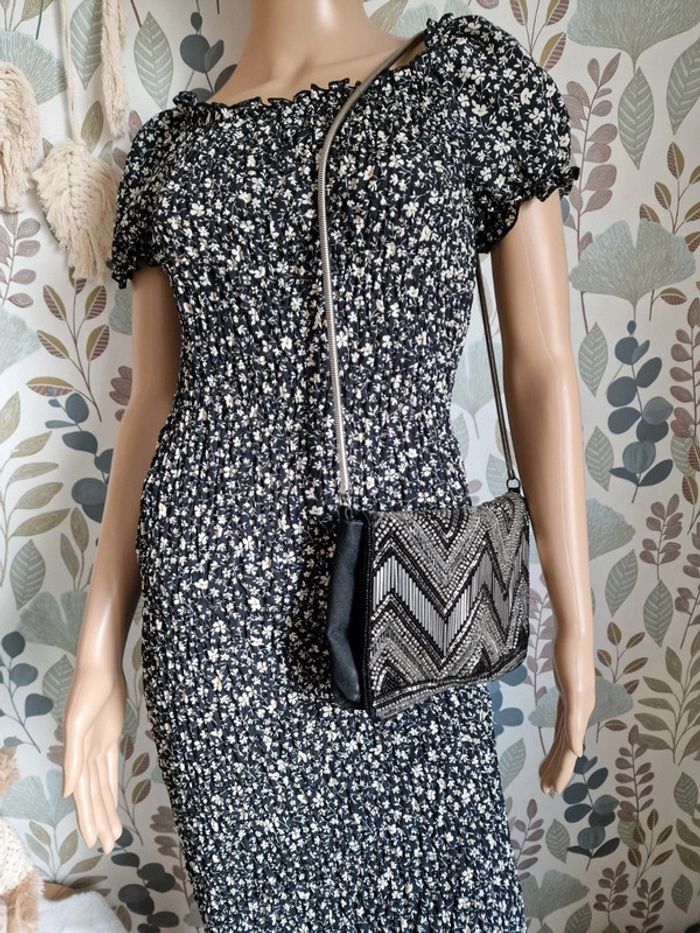 Sac avec chaîne H&M 25x18 cm En suédine noir et perles