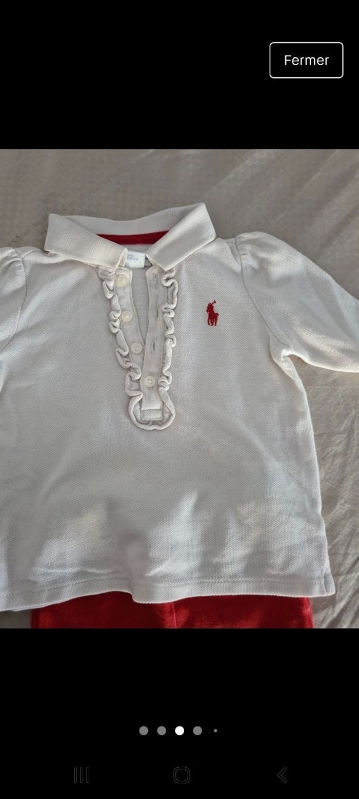 Ensemble fille ralph lauren très bon etat 9 mois blanc et rouge