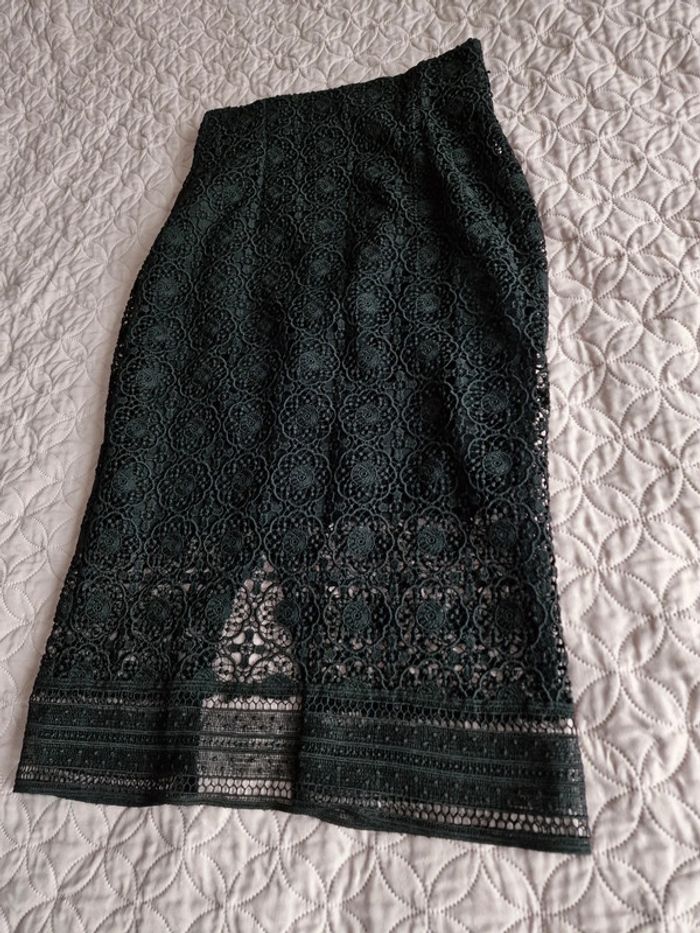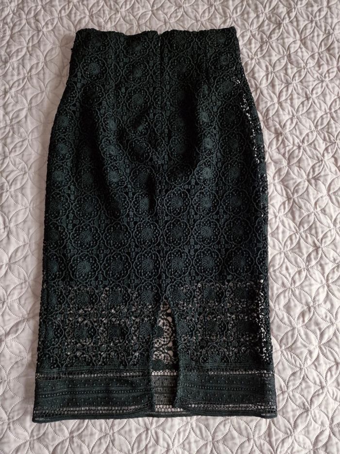 Jupe 34 en dentelle noir MNG Fermeture zip, fente dans le bas derrière Style crayon