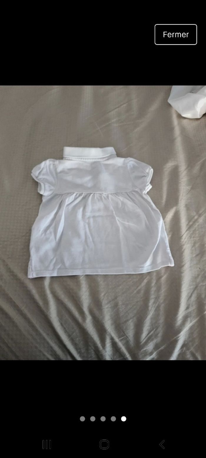 Polo blanc avec logo rose très bon état 9/12 mois