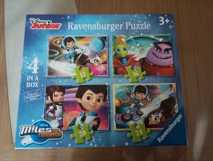 Boite comprenant 4 puzzles Disney Miles from tomorrow de 12, 16, 20 et 24 pièces. Le tout est complet et en parfait état #28flonat01jeux