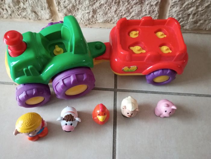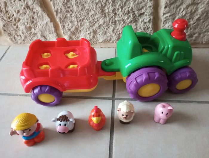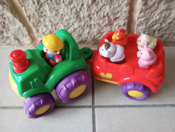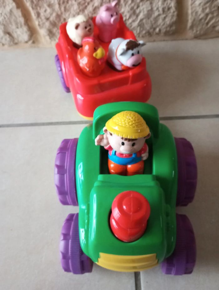 Tracteur sonore complet avec 1 fermier et 4 animaux. Lorsqu'on place les animaux sur le tracteur cela fait le bruit de l'animal et pour le fermier de la musique. #28flonat01jeux