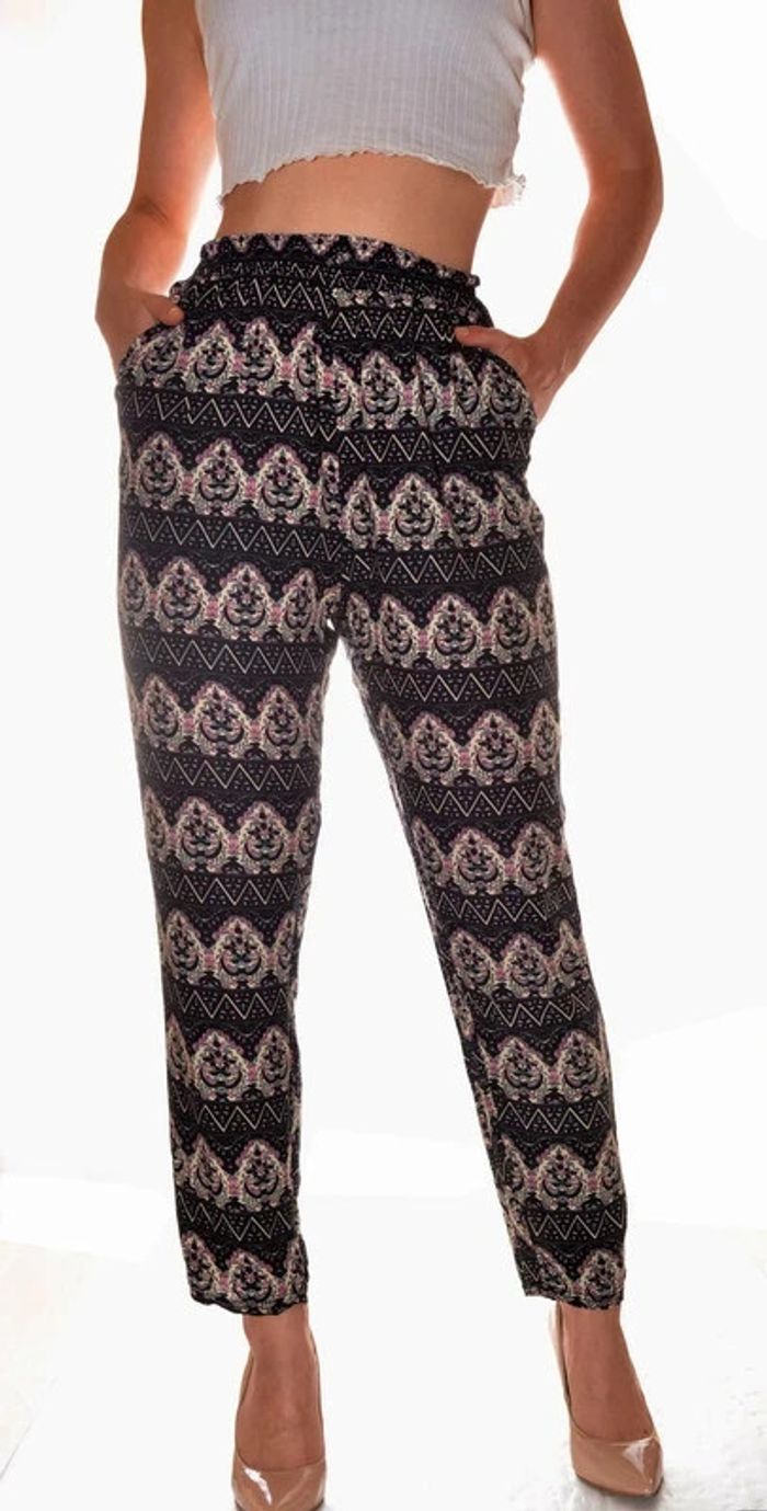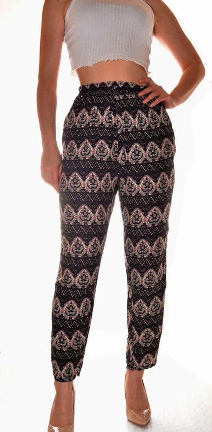 pantalon léger taille haute décontracté féminin motif floral géométrique taille 40 - photo numéro 1