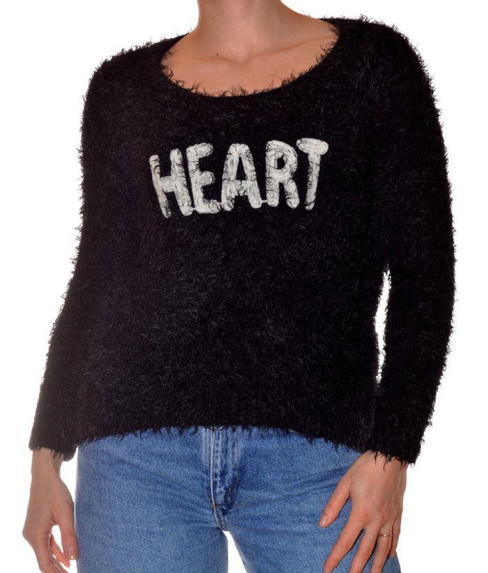 Pull hiver noir doux taille M motif heart