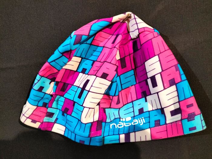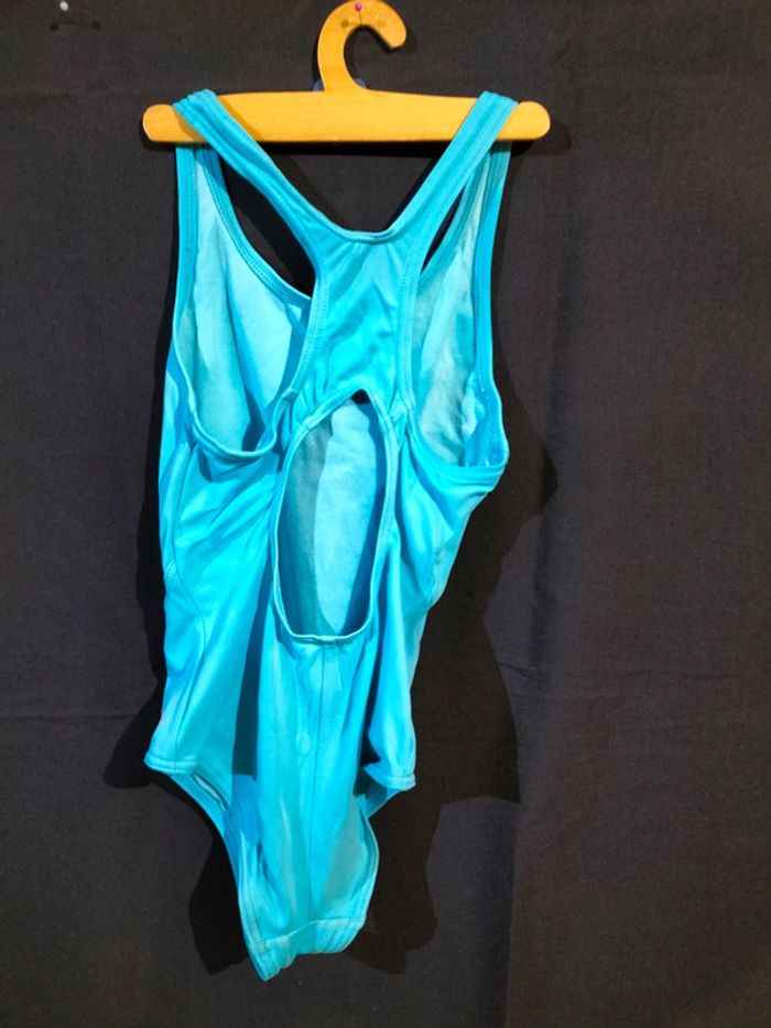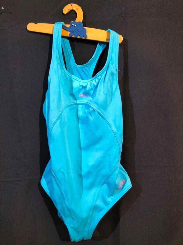 Maillot,bonnet de bain,et haut de maillot 2 pièces.Quelques traces d'usure sur le maillot ,mais ce n'est visible que de près,et c'est encore tout à fait mettable.