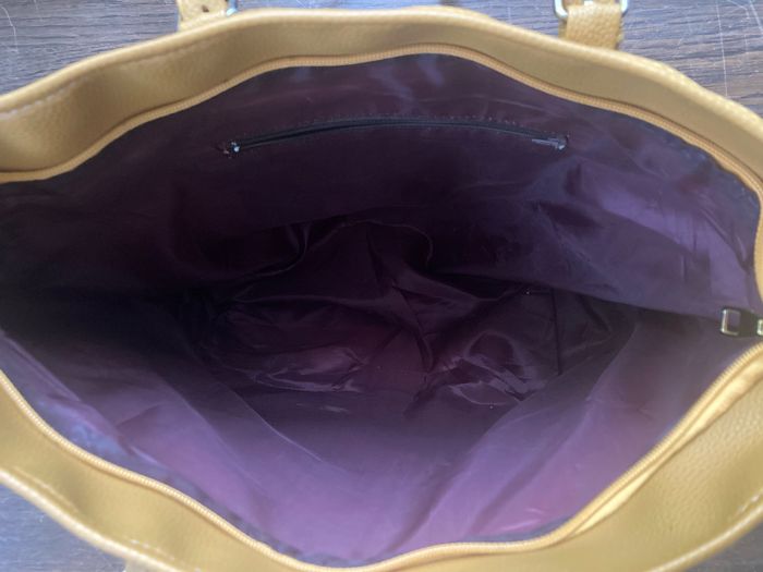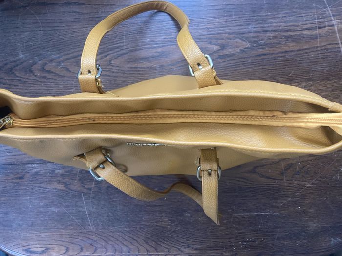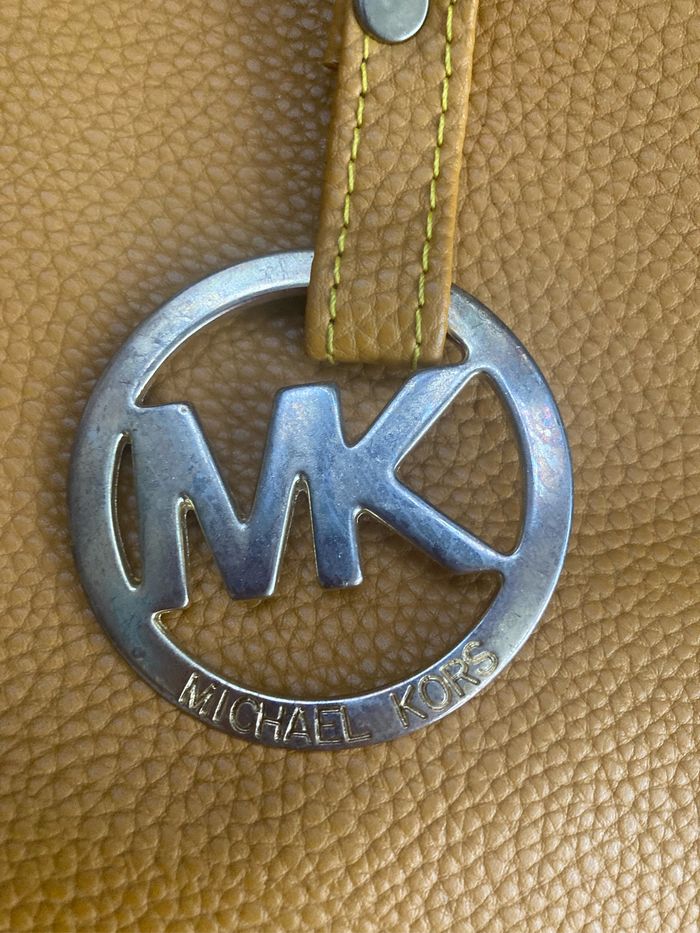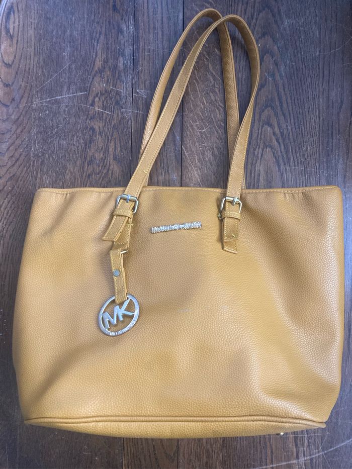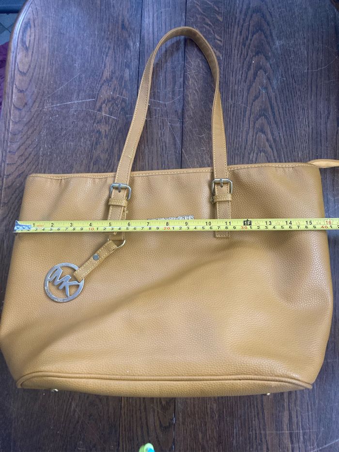À vendre 💰 Très jolie sac avec fermeture éclair 👜 ✨ très bon état il y a une légère coloration à l’avant du sac en haut à gauche (voir dernière photo) Et des traces d’utilisation sur les pièces métallique (voir photo) 📏 42 cm de large, 29 cm de hauteur et 16 cm de profondeur 🎨 Moutarde et doré 🧥 Marque Michael Kors 📦 Envoi rapide et soigné