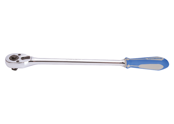 Cliquet 1/2" Push Button de 375mm - KING TONY 4762G Verrouillage et verrouillage de sécurité de la douille par bouton poussoir (PUSH BUTTON) 32 dents Manche métallique gainé Angle de reprise de 11° Finition chromée polie Marque KING TONY Référence 476215G Outillage Professionnel - Garantie à vie NEUF