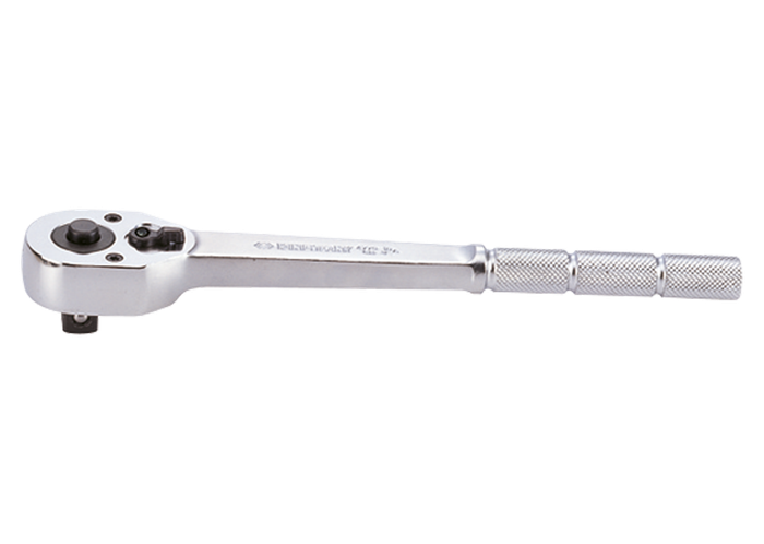 Cliquet 1/2" avec Push Button - King Tony 477110B Verrouillage de sécurité de la douille (push button) 32 dents Manche métallique compatible avec poignée ajustable Angle de reprise de 11° Finition chromée polie Marque KING TONY Référence 477110B Outillage Professionnel - Garantie à vie NEUF