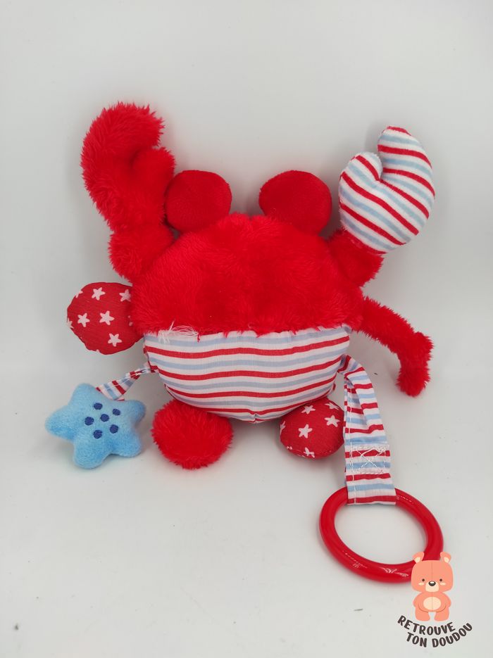 🦀 Peluche D'activité Crabe Rouge Tchibo, marque TCM Anneau, papier froissé, hochet, nœud. 📏 Dimension : 20 cm environ ✨ Occasion. Très bon état, étiquette marque manquante 🧼 Passage vapeur 👀 Vous achetez le doudou que vous voyez sur les photos.