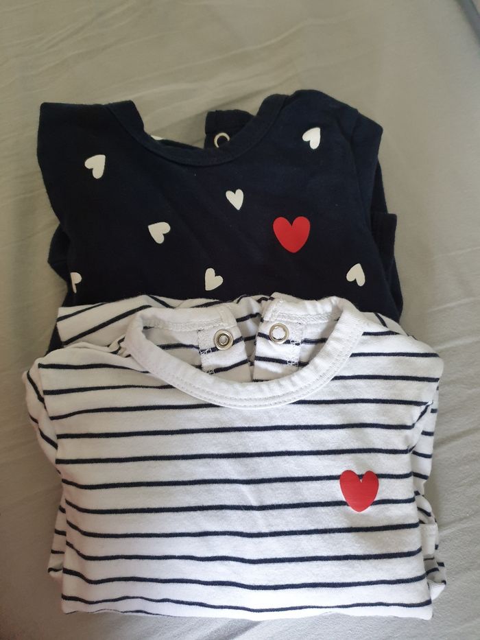 2 bodies Kiabi 3mois Mis 1 fois car bébé un peu a l'étroit 🙄😅