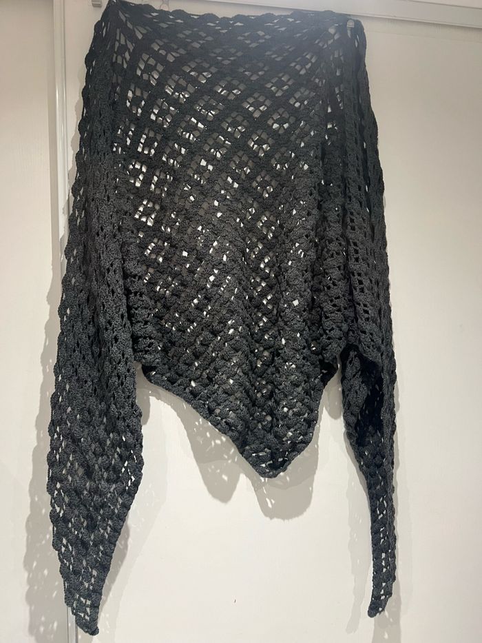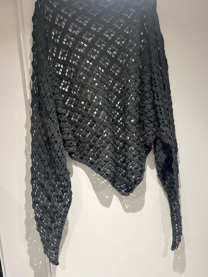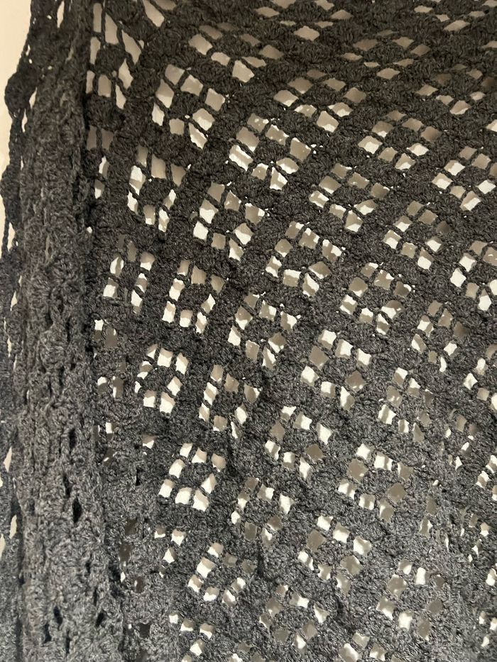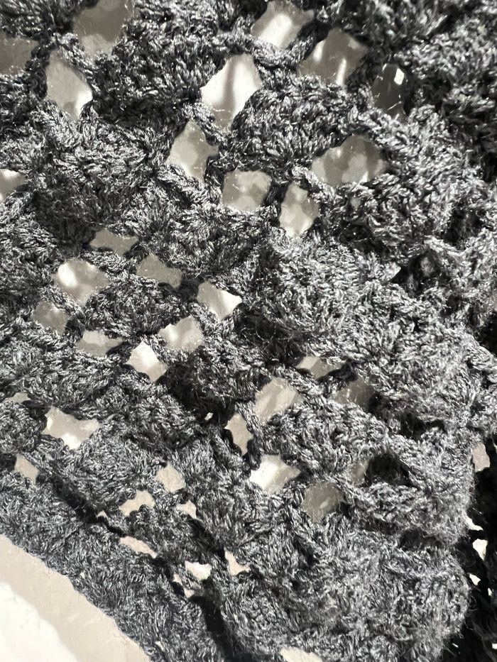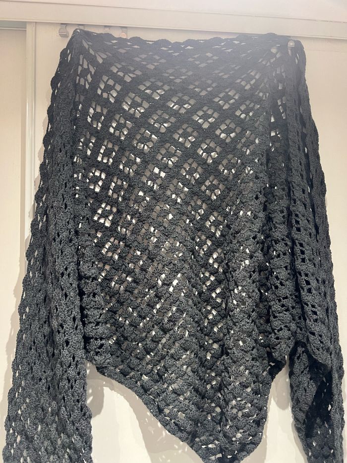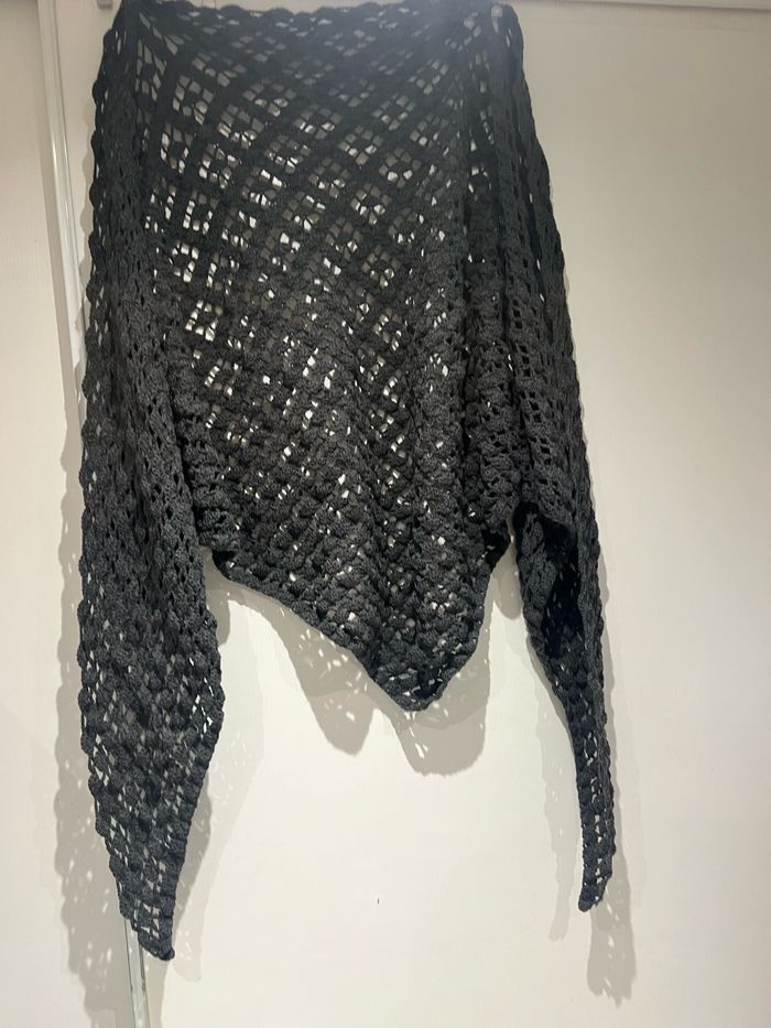 Je vends un châle Fabrication artisanale. fait main Il est neuf Je ne connais pas la composition exacte. Il doit y avoir du coton car il est doux au touché … Il ne pique pas Châle Gris foncés, gris anthracite fait maison fait main Choup 480