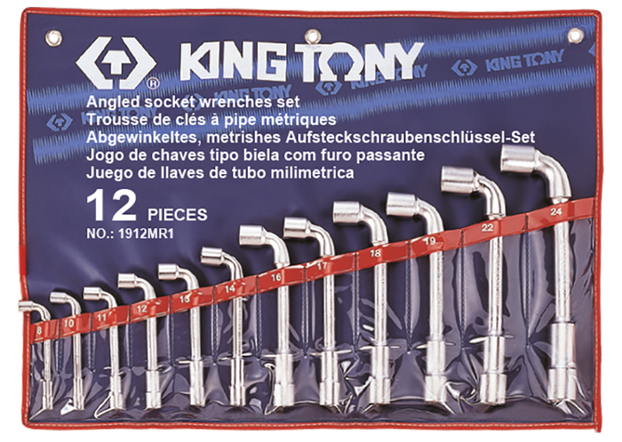 Jeu de 12 clés à pipe débouchées de 8 à 24mm 6x6 pans - king tony 1912MR1 Comprend: clés à pipe débouchées 6x6 pans de 8 - 10 - 11 - 12 - 13 - 14 - 16 - 17 - 18 - 19 - 22 - 24 mm Marque KING TONY Référence 1912MR1 Outillage Professionnel - Garantie à vie NEUF